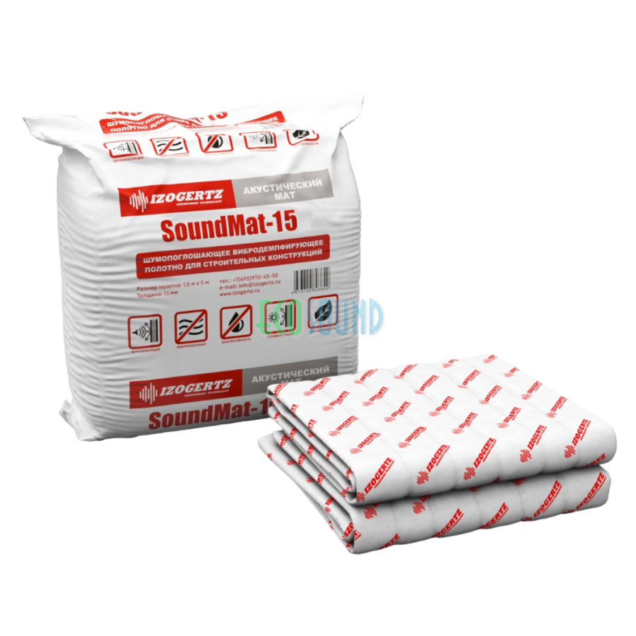 Izogertz SoundMat 15 – это трехслойный материал, представляющий собой стекловолокнистый холст, защищенный слоем из спанбонда. Обладает высокими звукоизоляционными и вибродемпфирующими свойствами, не содержит вредных примесей типа фенола и формальдегидов.
